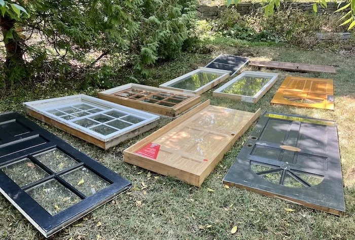 We spent time in the last few weeks going through thousands of items and were able to source all the windows and doors for our barn, the front exterior door for our house, our mudroom exterior door, and a couple interior doors. We also scored a super heavy duty hard maple butcher block counter top that we’ll repurpose for some counter spaces in our kitchen. All in all we’re saving thousands of dollars, repurposing materials that otherwise would’ve been thrown in a dumpster, supporting a local business, and in the process building a friendship with a local legend.